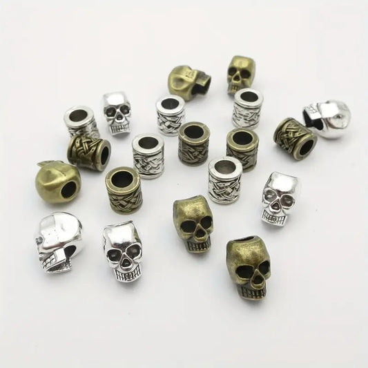 20pcs/pack Vintage Silvery Alloy Skull Head Big Hole Beard/Hair Dreadlock Male Loose Beads Vertical
