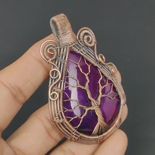 "Tree of Life Labradorite Pendant – Handmade Copper Wire Necklace"