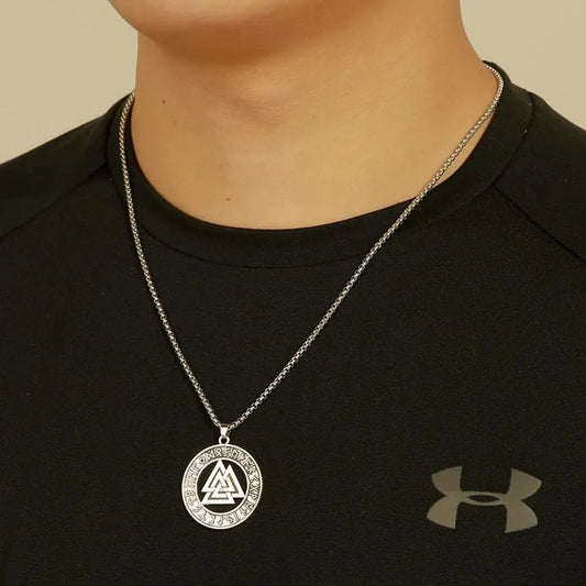 Norse Viking Pendant – Stainless Steel Vegvisir Valknut Necklace