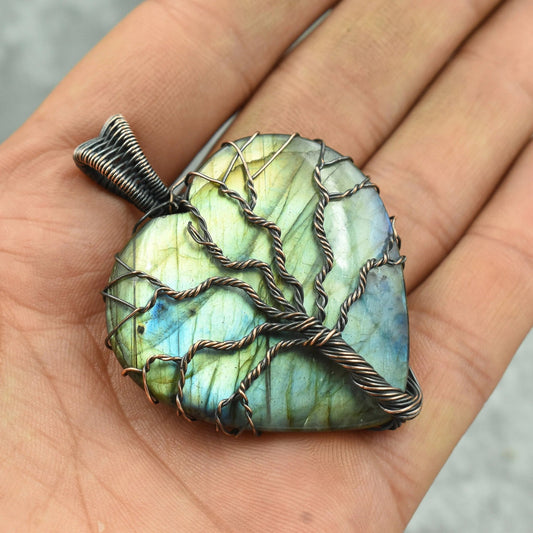 "Tree of Life Labradorite Pendant – Handmade Copper Wire Necklace"