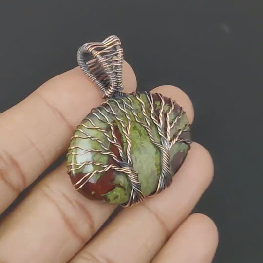 Double Tree of Life Dragon Blood \Copper Wire Wrapped Pendant Gemstone