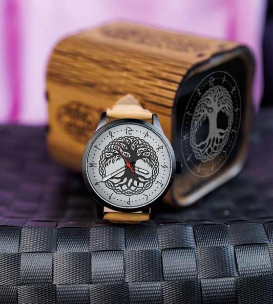 Viking Wooden Watch – Custom Engraved Timepiece for Men
