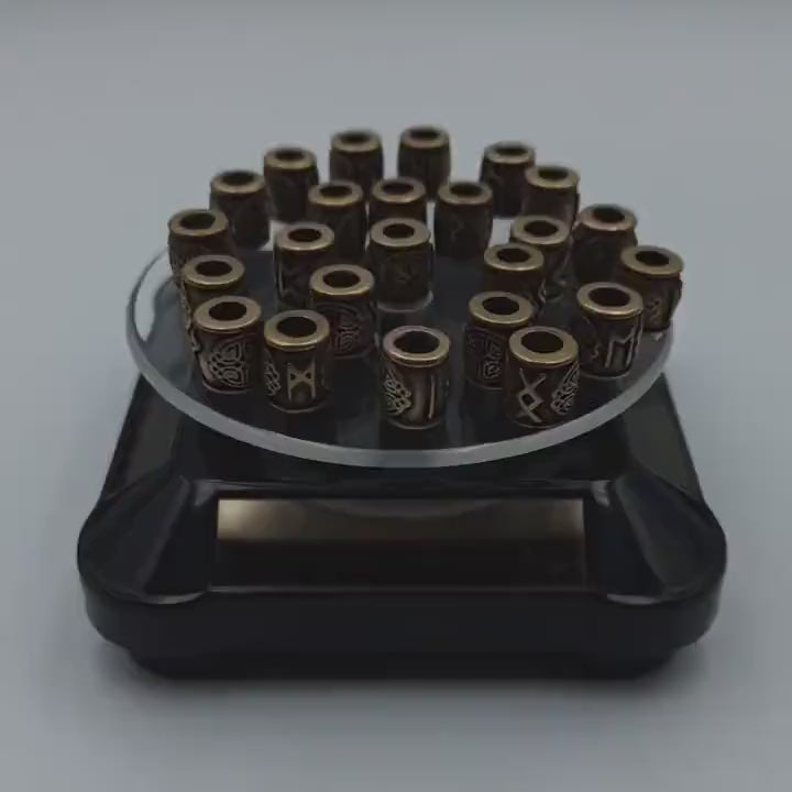 The Elder Futhark runes beads set is made from Italian bronze solid by hand casting. The Elder Futhark is the old alphabet used by Germanic and Norse tribes. The runes are part ot of Nordic pagan culture. The beads can be usen as Viking Dreadlock beads, beard beads or it can be used as knife or paracord lanyard bead.