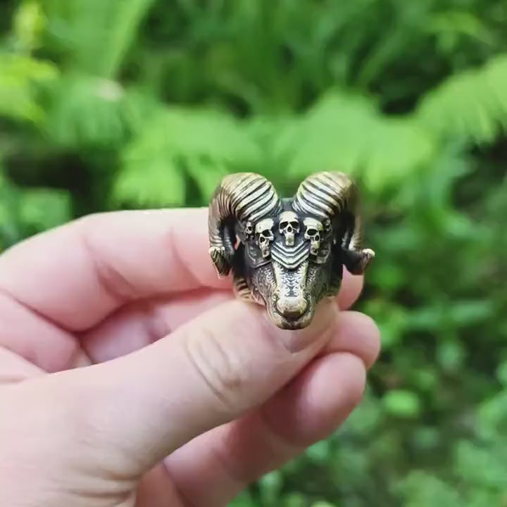 This is massive ring in form of Ram (goat) head decored with skulls on ram horns. The ring is made under the influence of Norse mythology in honor of Thor's goats - Tanngrisnir and Tanngnjóstr.